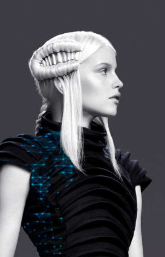 STITCHING-TECHNIK:Das Haar wird wie Stoff behandelt und mit Nadel und Faden genäht. STOFF TRIFFT AUF TEXTUR