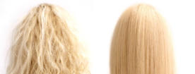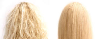 Das ErgebnisVor der Anwendung ist die Haarstruktur unruhig und glanzlos.Die Haare wirken spröde, stumpf und beansprucht.Nach der Anwendung sind die Haare kaum wiederzuerkennen.Die Haare sind gestärkt, fallen wundervoll glatt und strahlen inbrillantem Glanz. Die Haarstruktur ist beruhigt, die Haare sindspürbar gesund und revitalisiert.